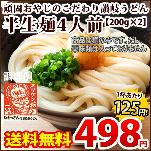 送料無料 讃岐うどん 頑固おやじのこだわり讃岐うどん 半生めん 4人前(200g×2){ 讃岐うどん 送料無料 メール便 お試し }